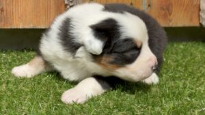 Il est indemne de toutes les tares connues du Berger Australien, ce qui fais de lui un très bon reproducteur.